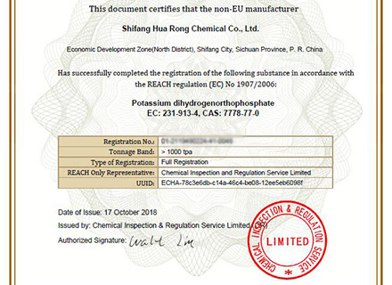 什邡市華蓉化工有限公司原名什邡華蓉科技有限責(zé)任公司,位于磷礦資源豐富的四川省什邡市,距成都60公里,交通運(yùn)輸便利,是一家專業(yè)生產(chǎn)、研發(fā)精細(xì)磷化工系列產(chǎn)品的大型生產(chǎn)企業(yè)。生產(chǎn)設(shè)備先進(jìn),技術(shù)研發(fā)團(tuán)隊(duì)強(qiáng)大,現(xiàn)公司占地面積約30000平方米,擁有5條生產(chǎn)線,主要生產(chǎn)大量元素水溶肥、磷酸二氫鉀、磷酸二氫銨、磷酸氫二銨、硝酸鉀、磷酸脲以及磷酸,年總產(chǎn)量為100000噸以上。公司資質(zhì)齊全,管理規(guī)范,已取得安全生產(chǎn)許可證、ISO9001:2015質(zhì)量管理體系認(rèn)證、食品生產(chǎn)許可證、工業(yè)產(chǎn)品生產(chǎn)許可證、自營(yíng)進(jìn)出口經(jīng)營(yíng)權(quán)進(jìn)出口證書(shū)以及出口歐盟國(guó)家部分產(chǎn)品的REACH證書(shū)。